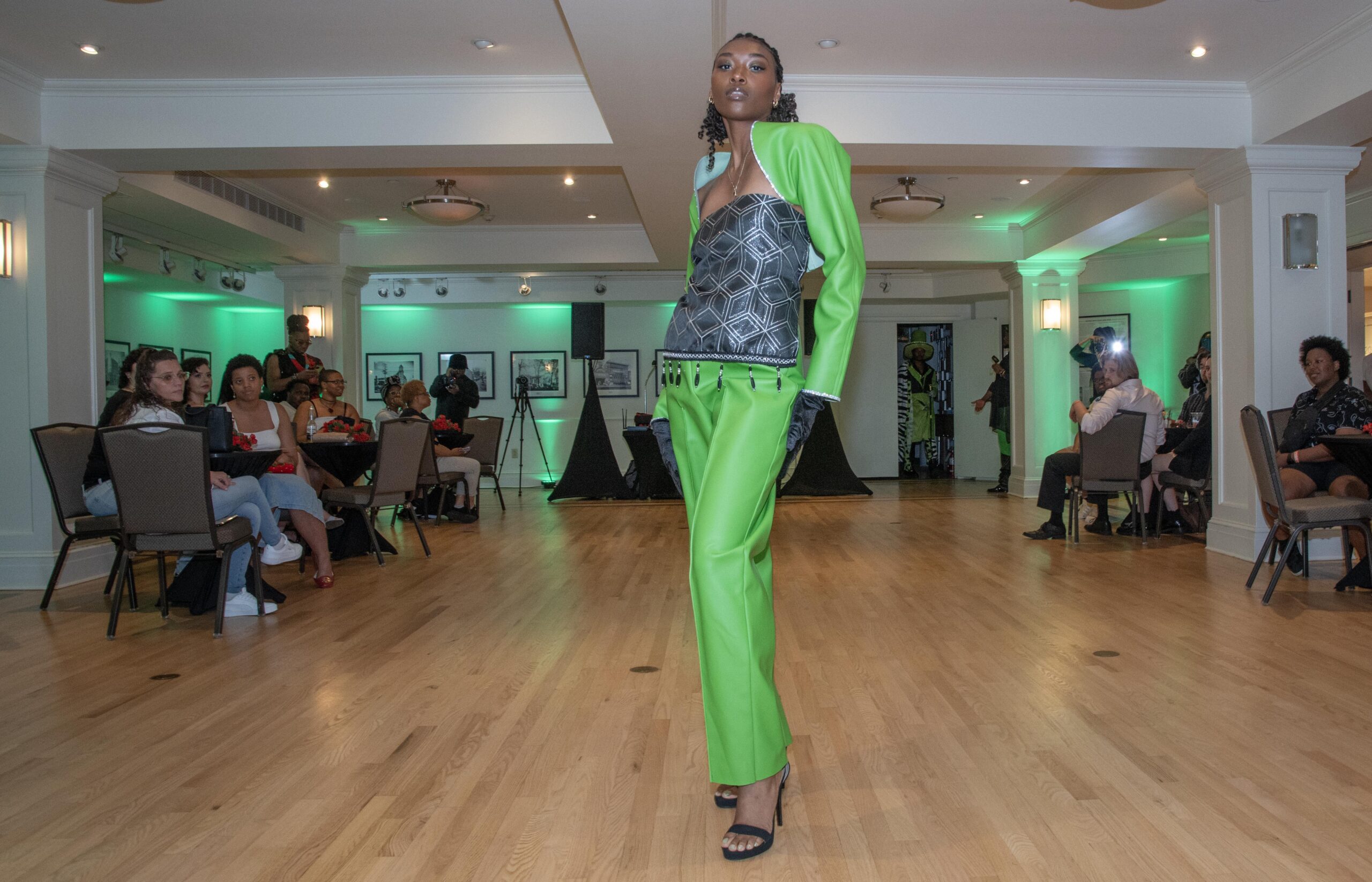 A model posing during Us Giving Richmond Connections (UGRC)’s annual Fashion Showcase on June 28 at The Valentine. The nonprofit advocates for the healthcare needs of Black LGBTQIA+ people. Photos by Scott Elmquist.