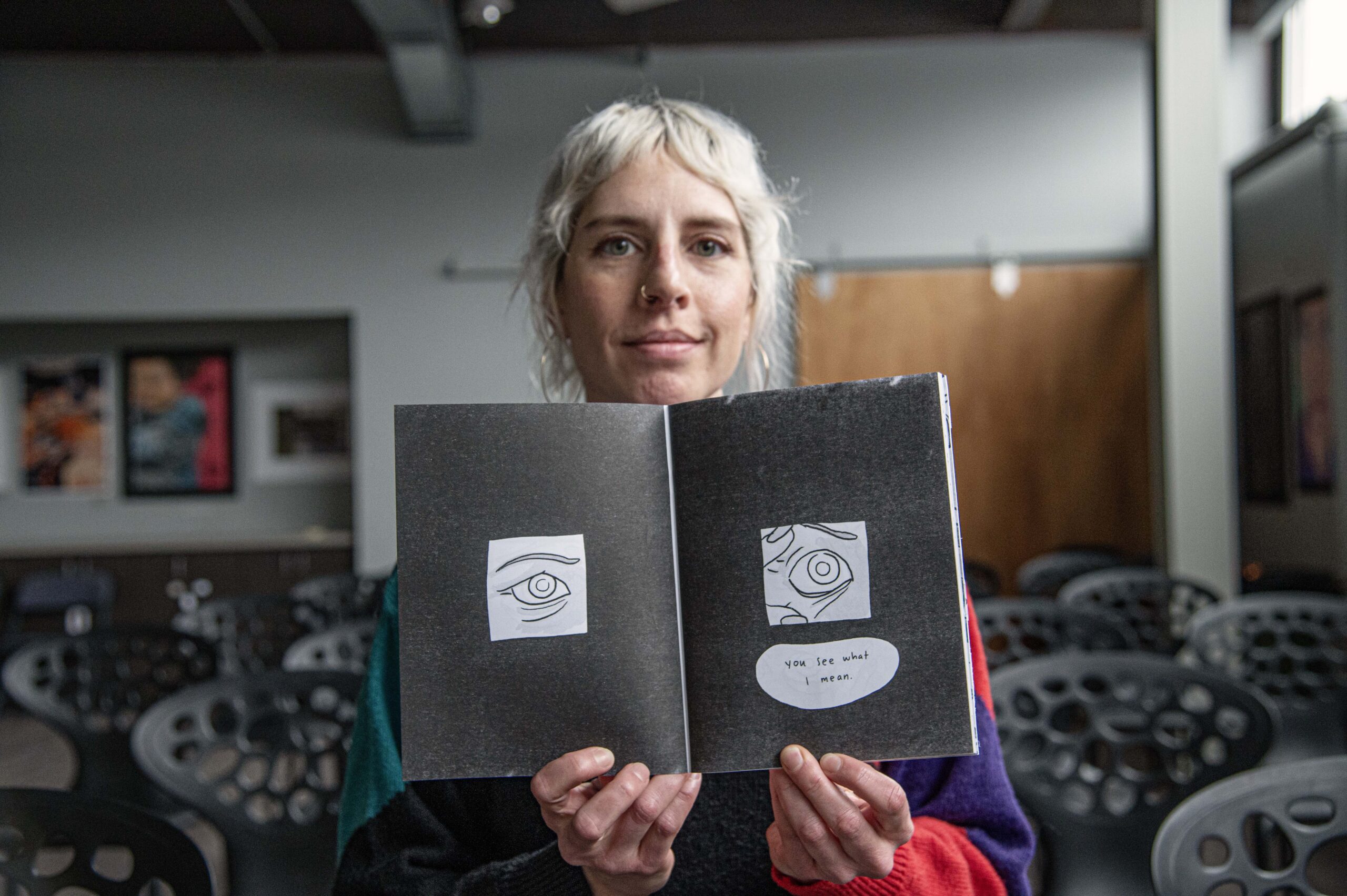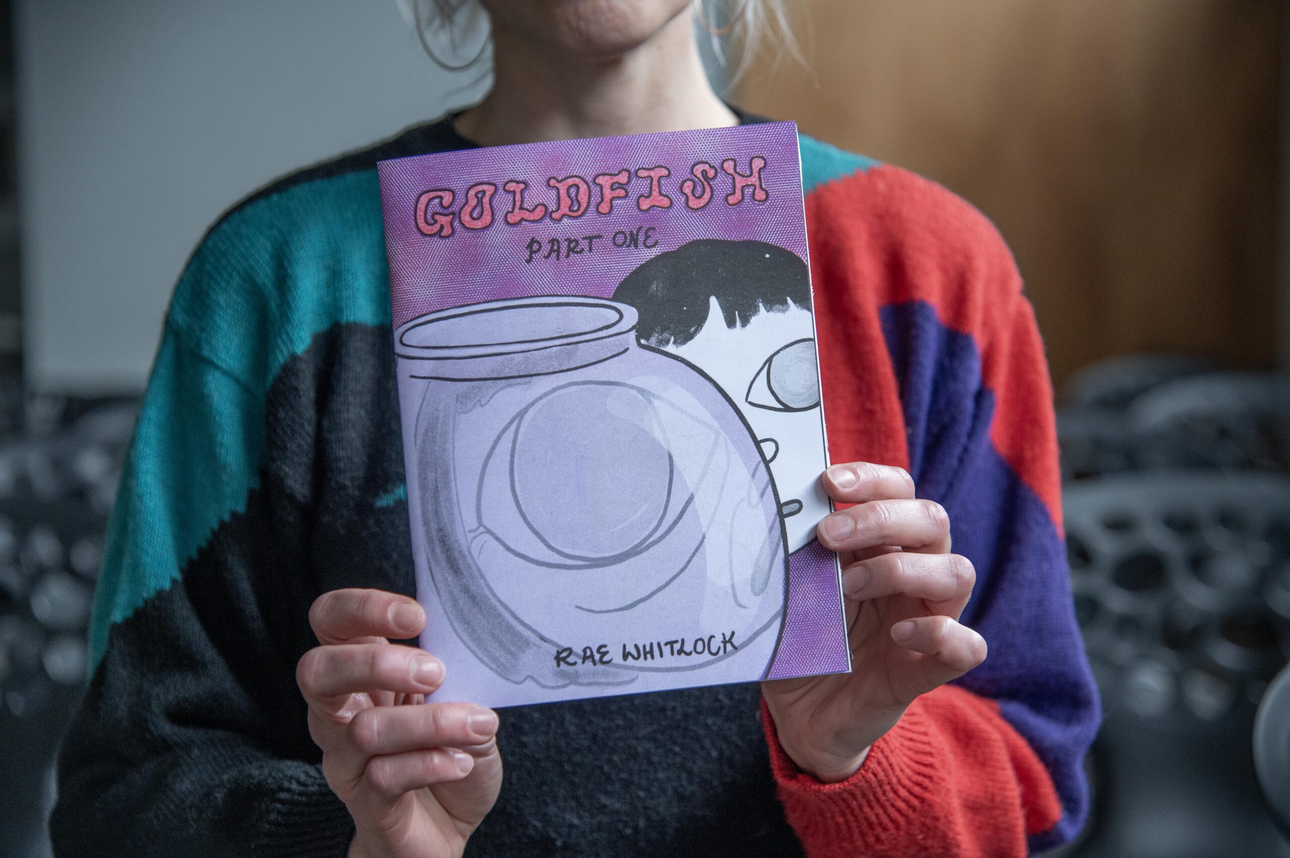 Last year, Whitlock spent nearly every weekend traveling to comic cons all over the country doing live readings, meeting other comic book artists, and yes, hawking her wares—the latest of which is “Goldfish” (2024), the first issue of a dystopian, feminist friendship tale. “’Goldfish’ part one is one part of many parts. There’s a long story to tell. My focus for this year is getting part two ready to publish. So, I’ll probably be doing less events and more sitting alone in my house and drawing.”