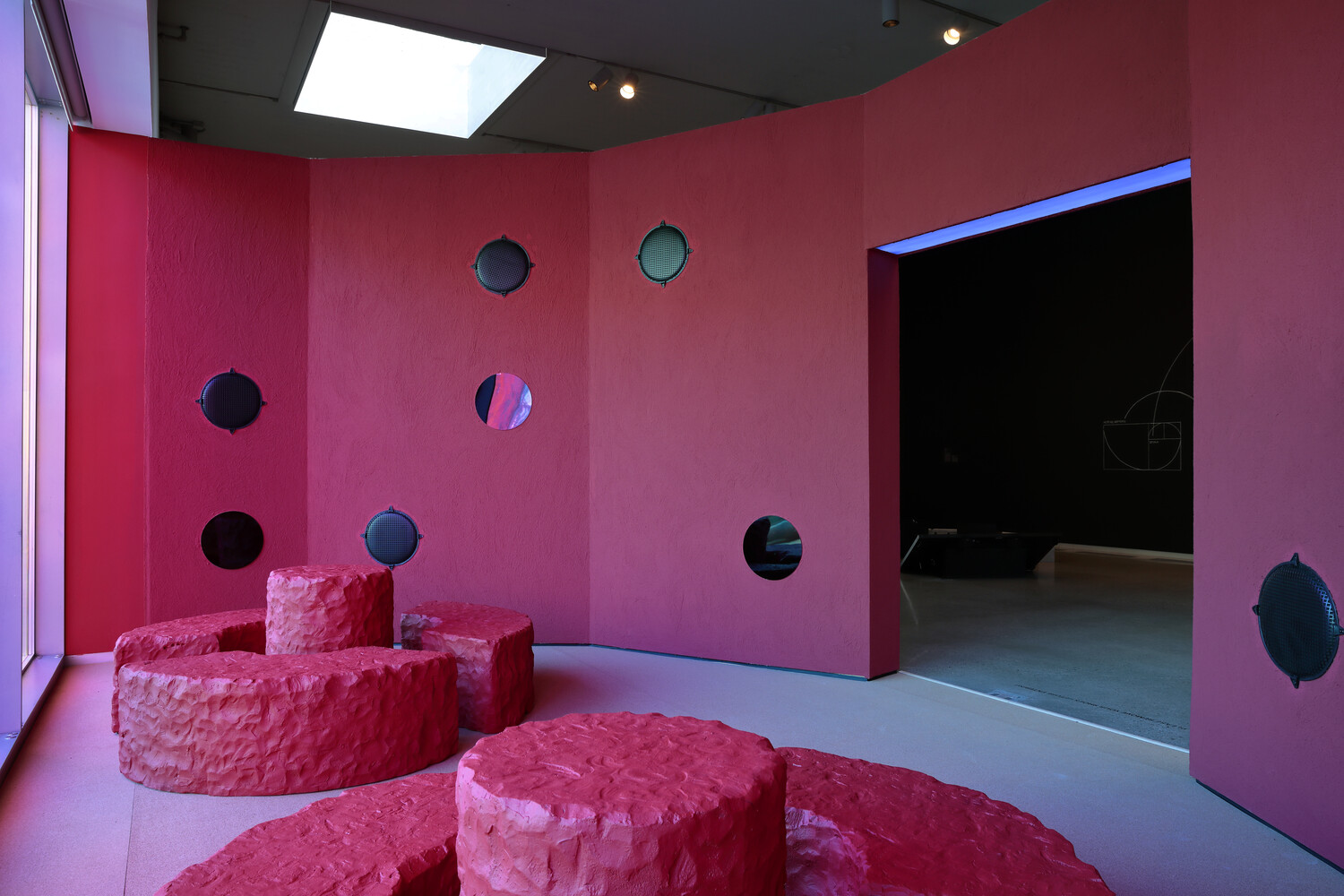 “The way it was configured had all the artists and all the same pieces, but it was an outdoor structure that took a different shape, so we recreated it for our space,” says Esseiva. “The cinderblock walls in fragments throughout the gallery is a notion that goes back to the architectural pavilion [in Lagos], which was a big cinderblock half-circle.”