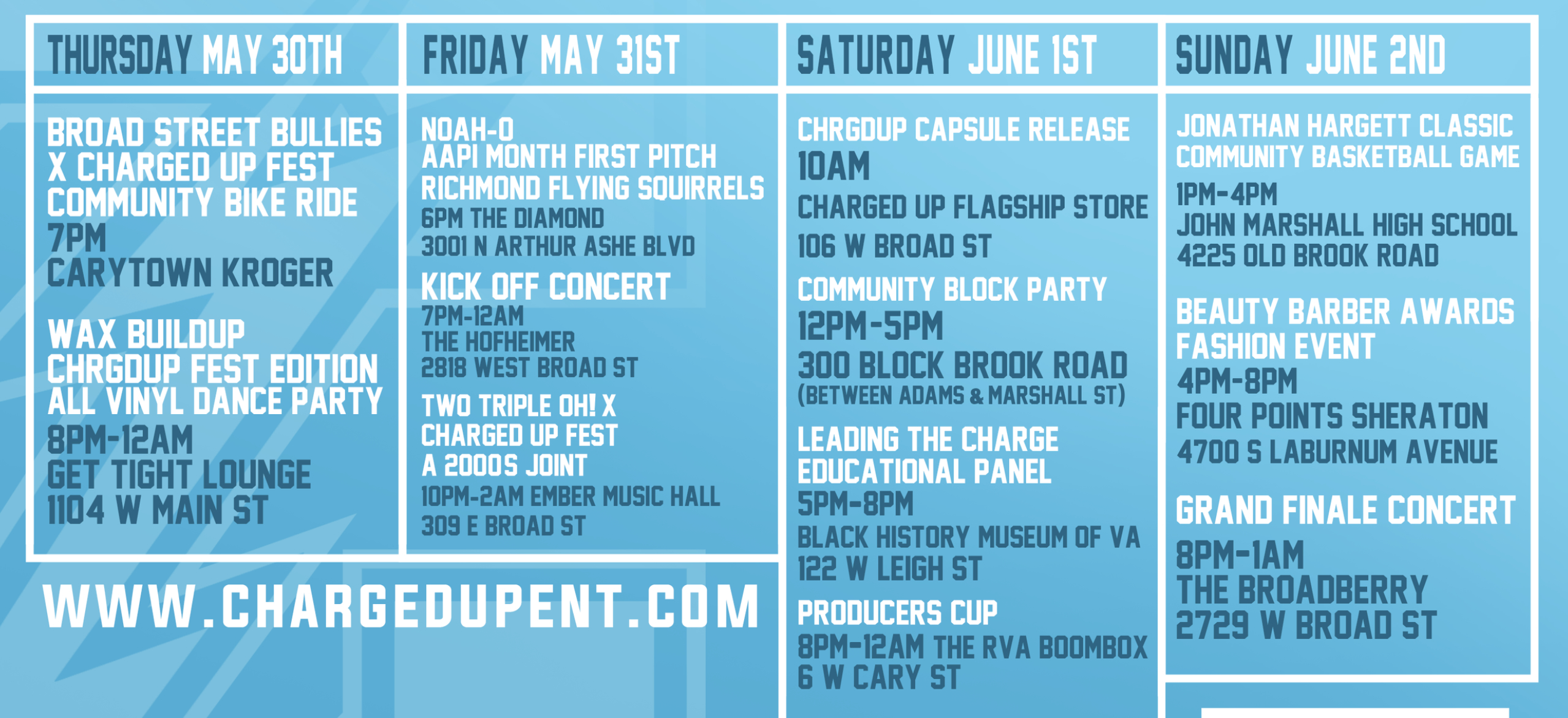 Know that the big grand finale concert happens on Sunday, June 2 at the Broadberry and features Trae tha Truth, Noah-O, Stalley, Jae Skeese, Nickelus F, Michael Millions, Radio B, D.M.P., Umbrella Collective, 3WaySlim, Joey Gallo, J Roddy Rod, Big No, T Mane, Rah Scrilla, FNF Chop, Big Sty, and many more. Also on June 1, five youths will be chose to pitch live at the Charged Up Fest Community Block Party for a $500 prize. To learn more about tickets and events, visit the website here.