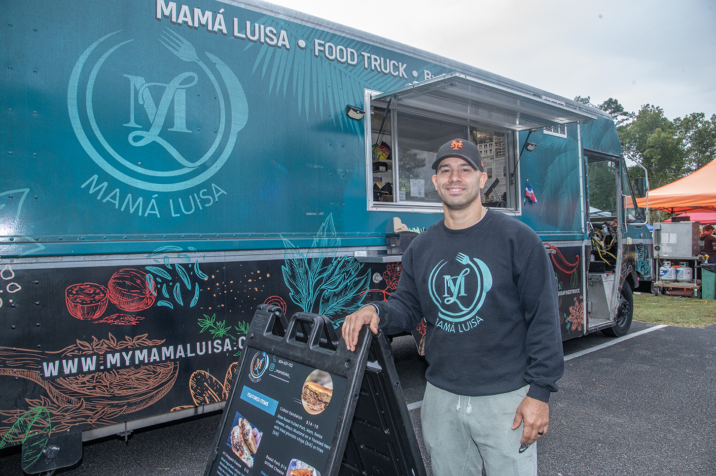 You can’t miss Mama Luisa. You may smell the mofongo, an homage to Abreu’s Dominican roots, or the chopped cheese, an homage to his New York upbringing, before you spy the bright teal truck, adorned with whimsical paintings of the ingredients he so deftly prepares.