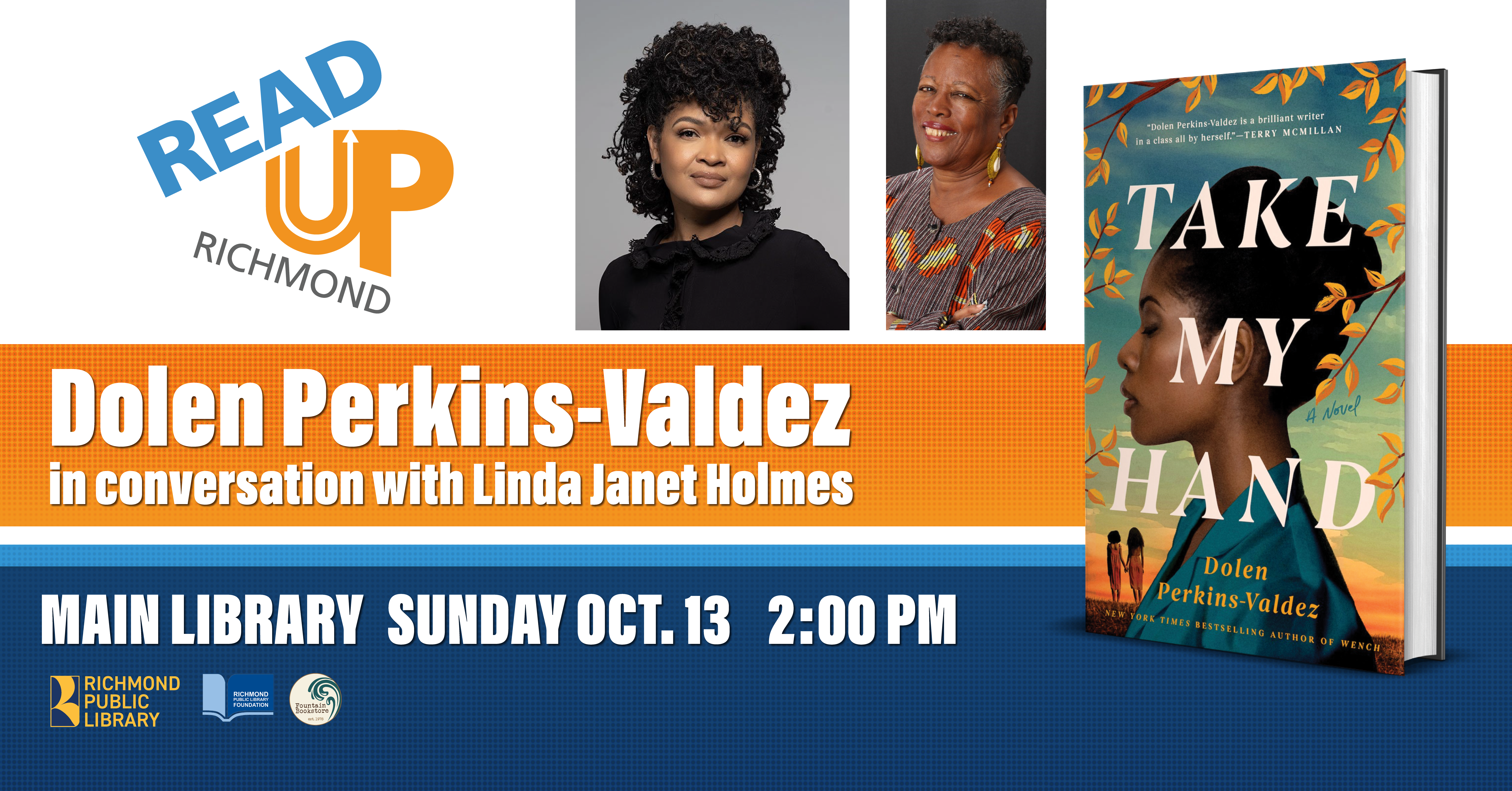 Richmond Public Main Library 101 E. Franklin St., Richmond, VA, VA, United StatesCome meet award winning author, Dolen Perkins-Valdez on Sunday, October 13 at 2:00 PM at the Richmond Public Main Library.* She'll be in conversation with historian and birthing justice advocate Linda Janet Holmes, discussing Perkins-Valdez's latest book "Take My Hand." From the publisher: "Inspired by true events that rocked the nation, a profoundly moving novel […]