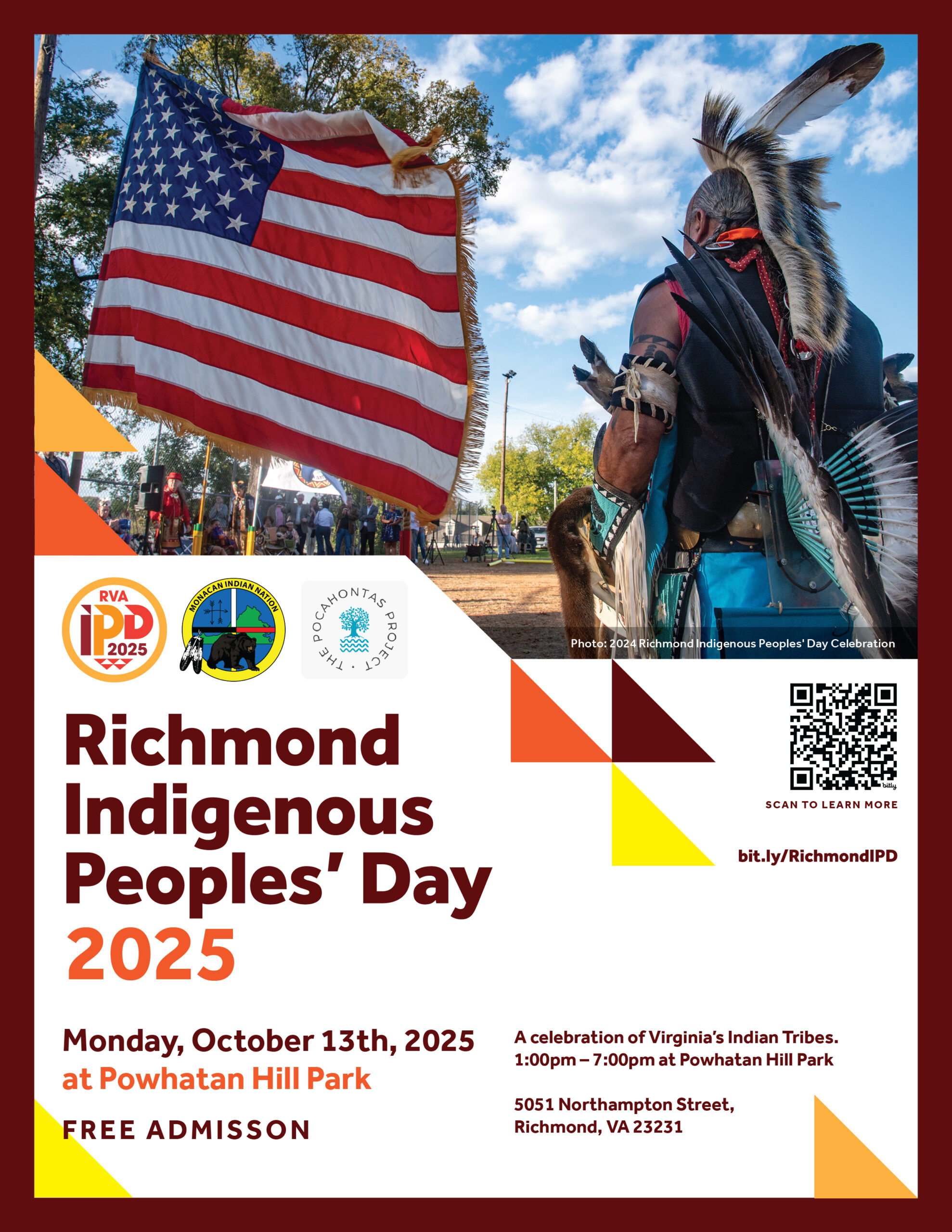 Powhatan Hill Park 5051 Northampton Street, Richmond, VA, United StatesThe 2025 Richmond IPD celebration will offer information and insight into the history and culture of Virginia’s Recognized Indian Tribes, with special attention to the Monacan Indian Nation. Attendees can browse the offerings of Virginia Indian arts and crafts vendors and enjoy Fry Bread, Strawberry Tea and other treats for purchase. The overall event runs […]