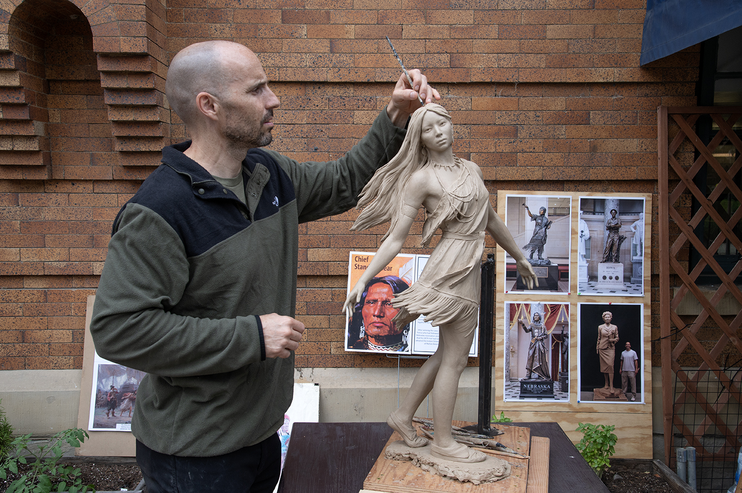 “I saw it as this young woman in this incredibly tough time of change,” Victor says, pressing the bits of clay into place. “This is a symbol of her as the first ambassador between the native people, the settlers and England, an important icon.”