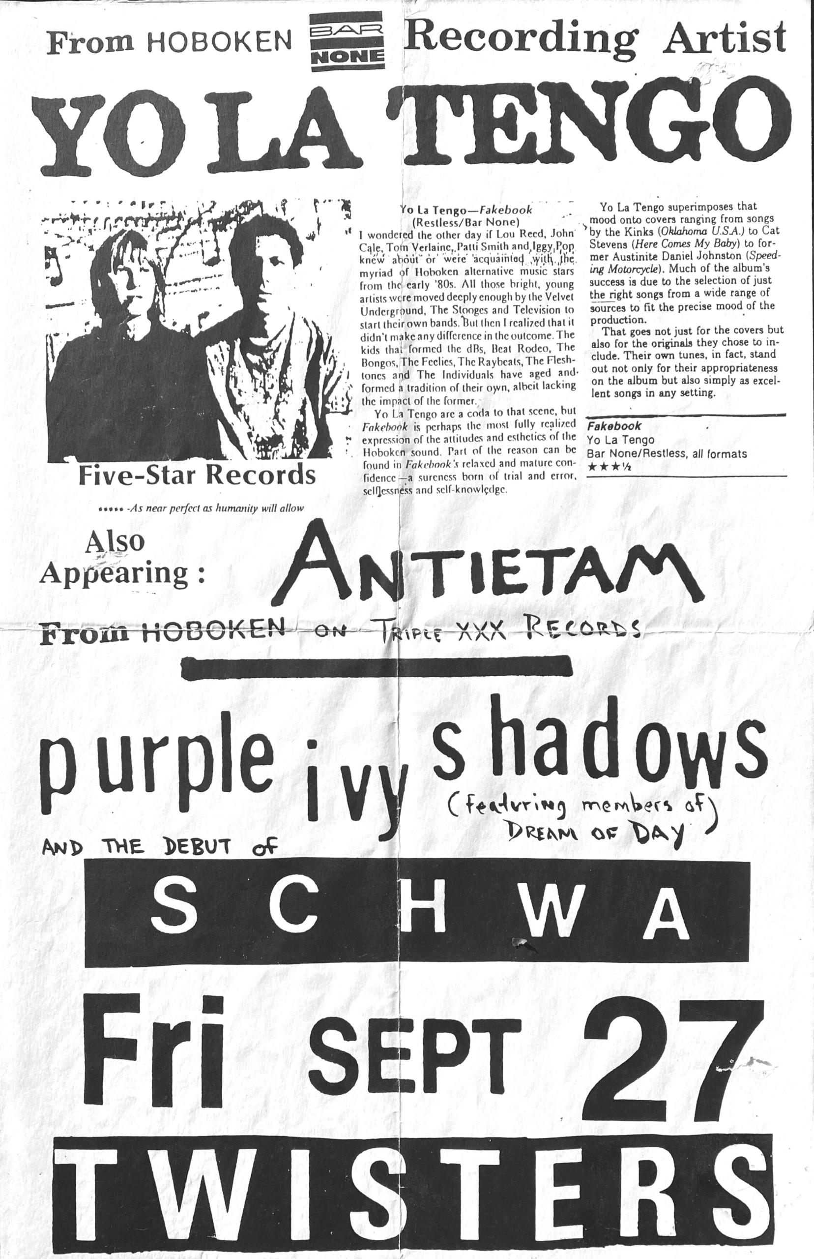 Schwa made it all the way to the cover of CMJ, the era’s preeminent taste-making magazine, resulting in a flood of attention from record labels. Hopes and ambitions ran high in the band, but a deal never materialized, and the relationship between Hearst and Bailey became strained. But Hearst still sees it as a foundational friendship and hoped they’d eventually pick up where they left off.