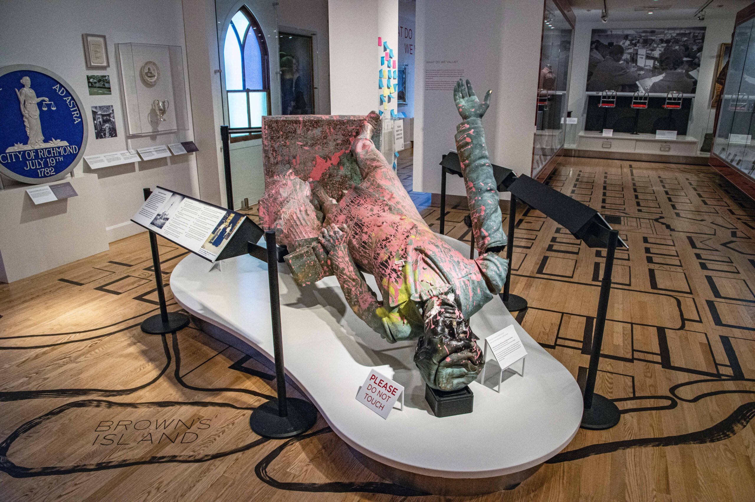 And, after protesters pulled the city’s statue of Jefferson Davis off its pedestal in June 2020, the museum acquired the sculpture and put it on display as it appeared after it was toppled: overthrown, broken, and covered in pink and yellow paint. The statue is now on loan as part of “Monuments,” an art exhibition co-organized and co-presented by The Museum of Contemporary Art, Los Angeles and The Brick.