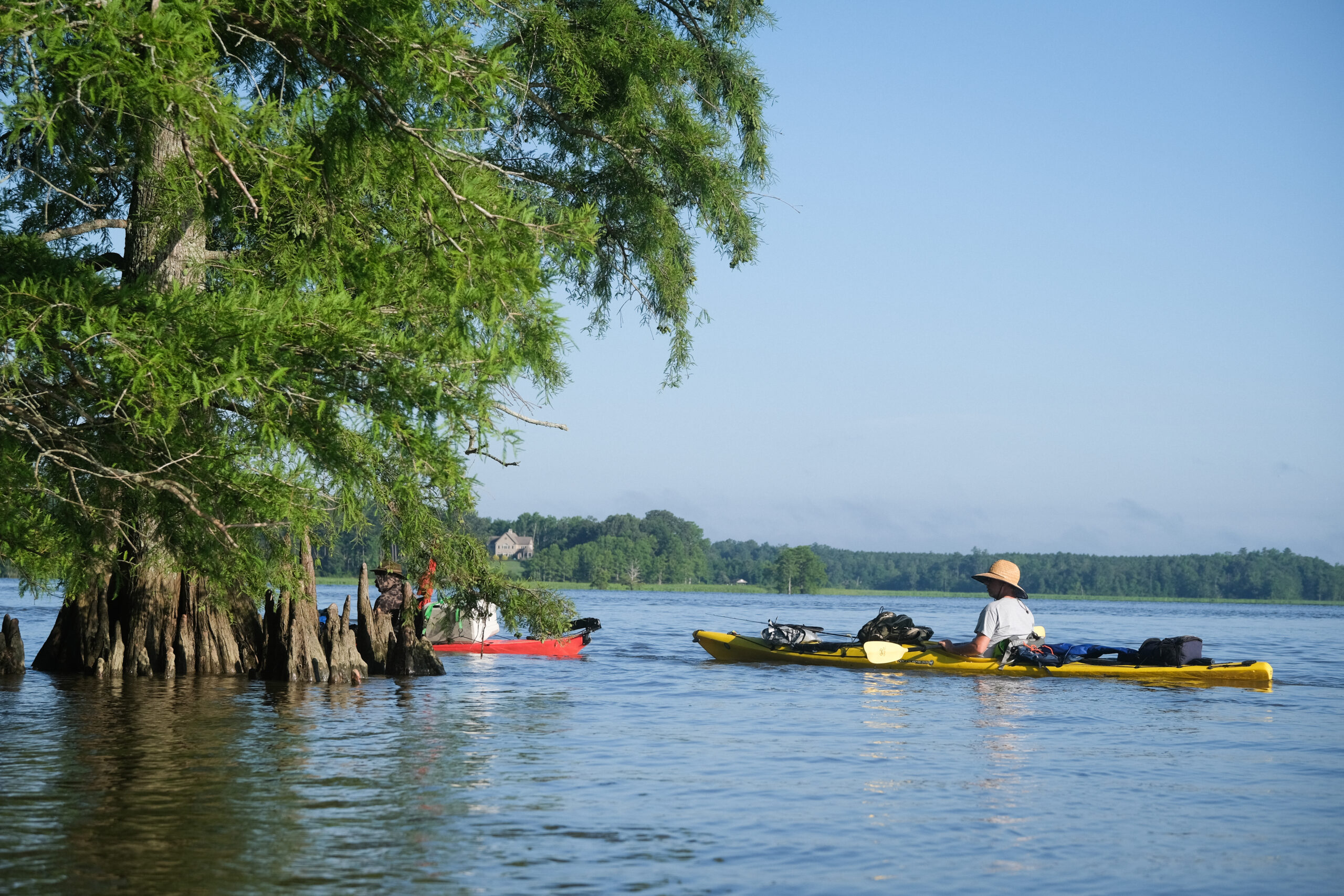 The lack of rapids, vast distances between river banks and caution around taking on water combined to impose a deliberate pace. The five friends respond by taking their time when confronted with natural beauty. They drift unhurriedly toward a curious fox, converse with a barred owl and marvel at a colony of great blue herons and the cypress forest they call home. “We live [nearby] so we take it for granted, but then there’s all these places that are kind of inaccessible unless you’re in a boat or paddling,” Justin Black says. “It felt like we were in a faraway land.”