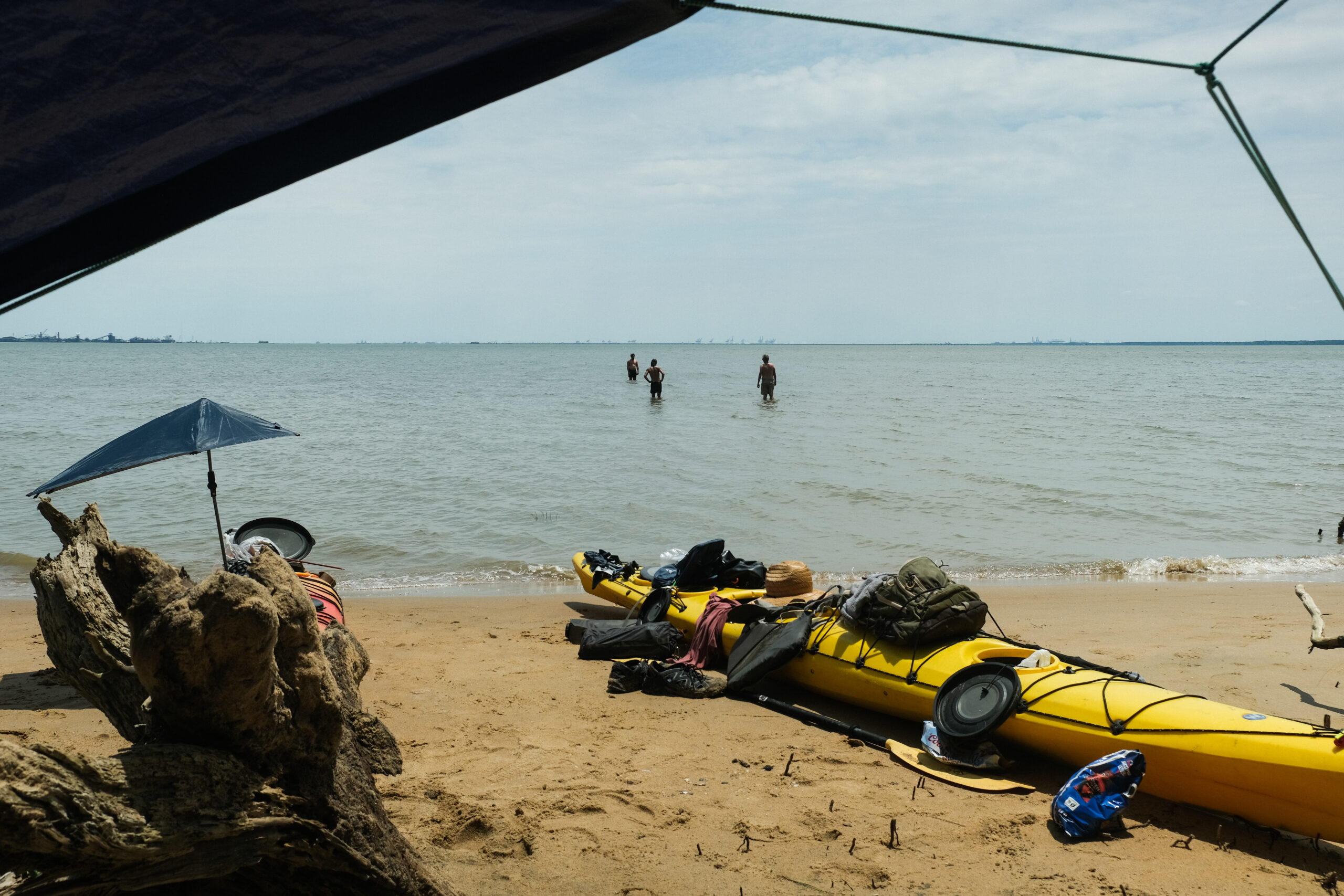 For “Tidal River,” the five men swap out canoes for kayaks, paddling away from their hometown loaded down to the water line with equipment and provisions. In more ways than one, they immerse themselves in the Lower James, which grows more massive by the mile, and which played a massively consequential part in the colonization, conflict and industrialization that birthed the United States of America. “You slowly see this river become what feels like an ocean,” Teschner says.