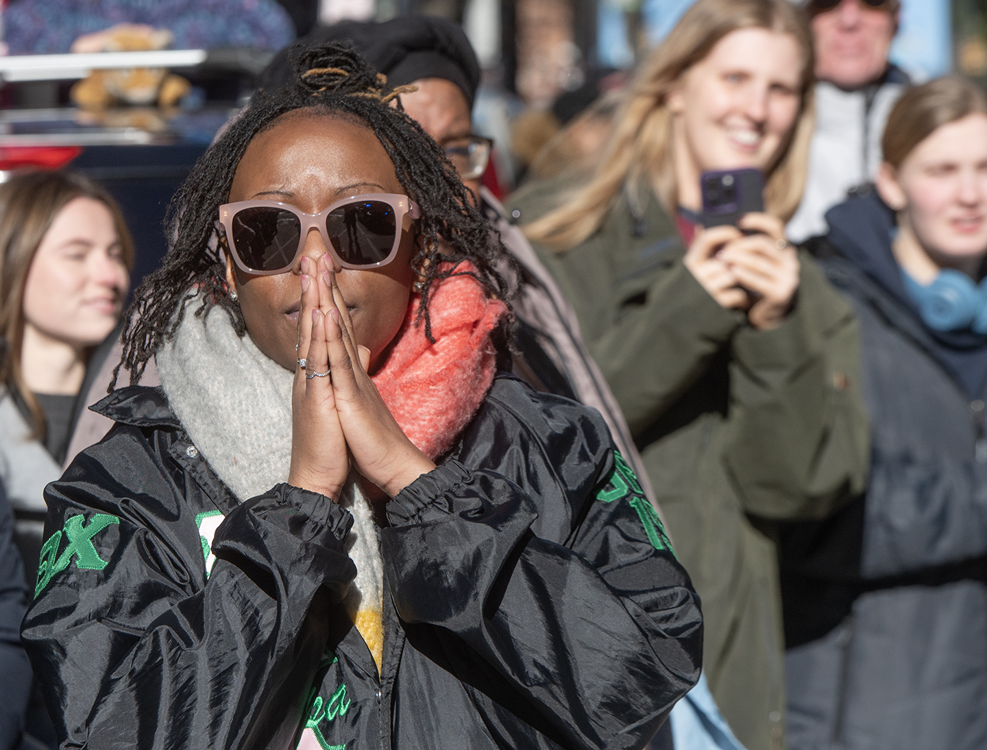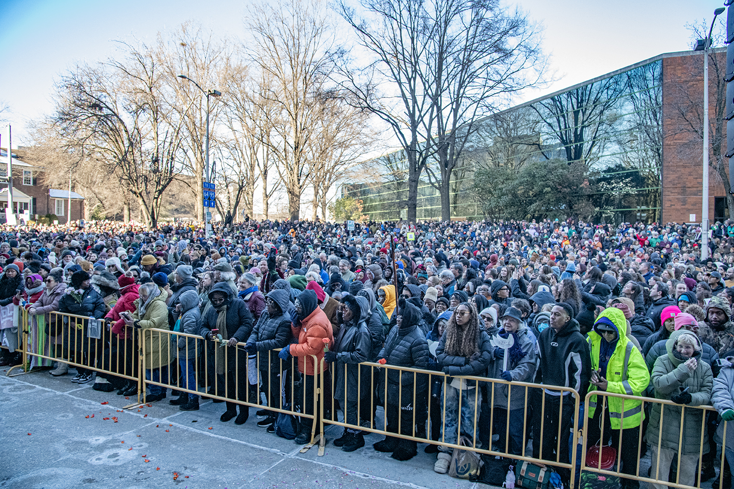 On this special Day 100 of this extraordinary pilgrimage, crowds began to gather at Fire Station #17 on Semmes Avenue in the early afternoon. Children scuffled in icy snow piles. Traffic slowly came to a halt as the crowd swelled, but no horns honked except a passing garbage truck with a cheerful greeting.