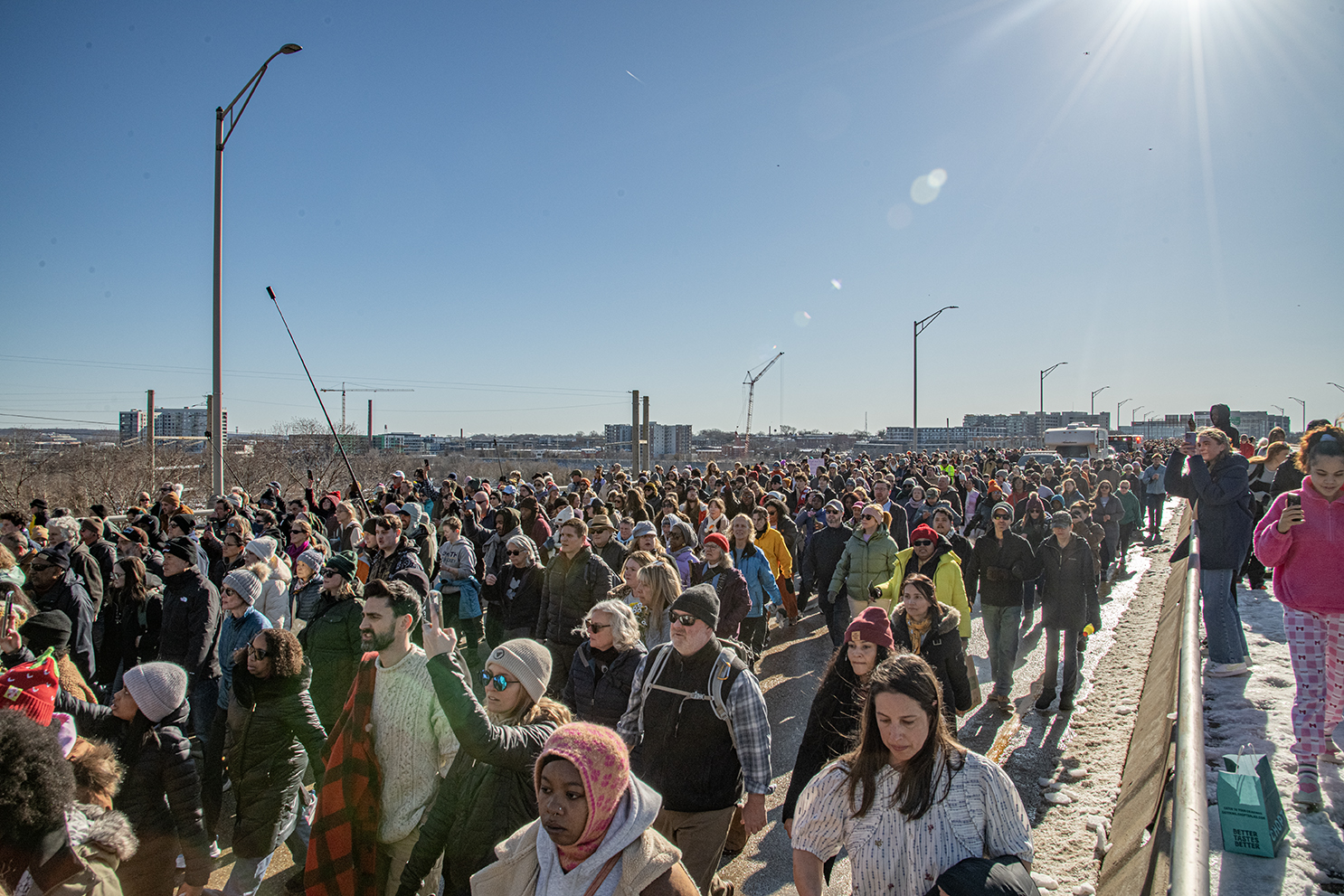 According to an estimate from the mayor’s office, 10,000 people joined the monks on this walk, spanning the Manchester Bridge, and gently flooding downtown streets. As a father walking along explained to his two young children, “Sometimes people gather together and do stuff like this when things really matter.”
