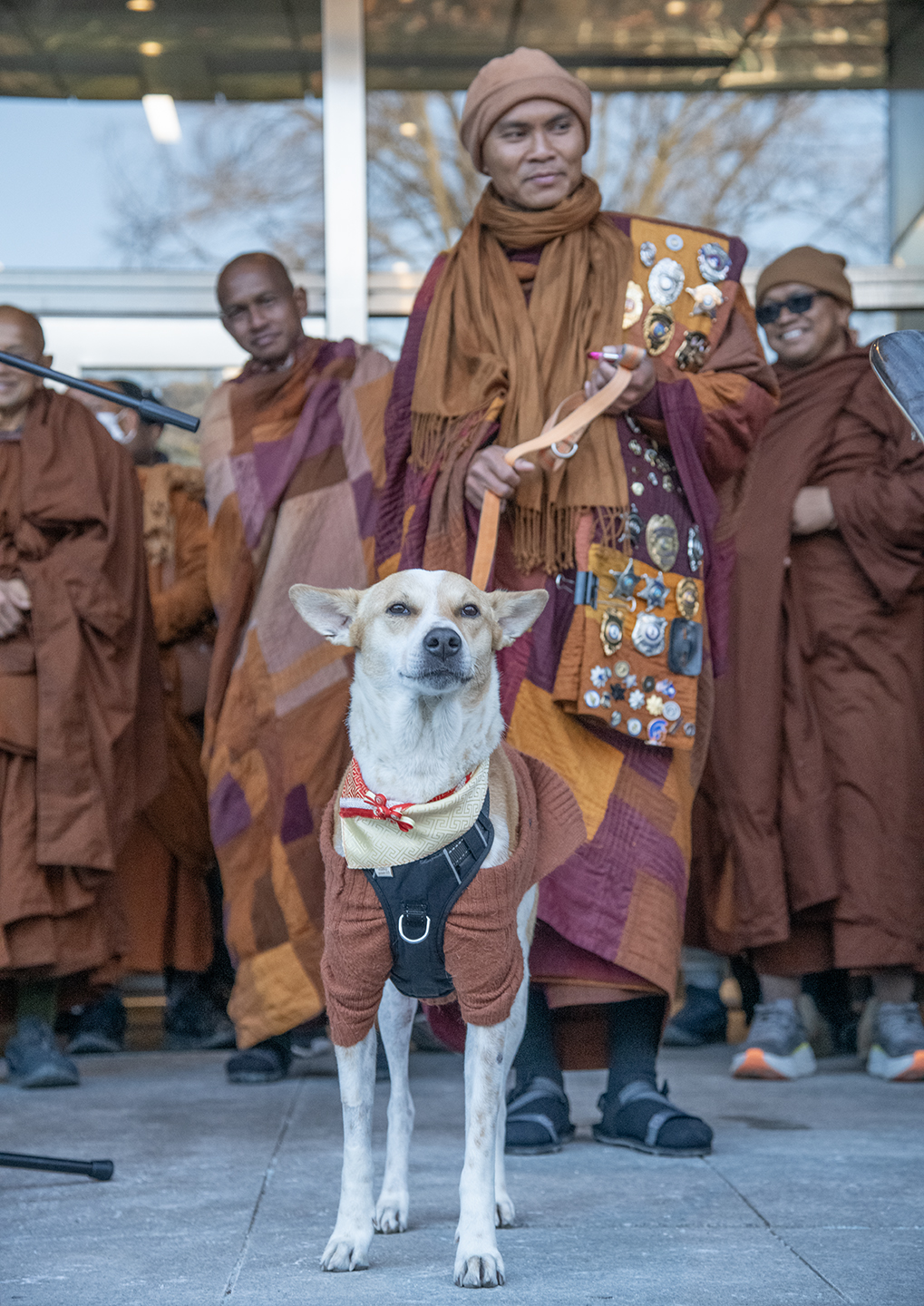 Aloka the Peace Dog — a stray dog the group adopted on a former pilgrimage in India — walked with them and has garnered his own devoted global following via social media (he even has a heart-shaped mark on his forehead). In South Carolina, Aloka paused for surgery for a nagging leg injury; he later rejoined the walk but now mostly rides in the Walk for Peace support vehicles while his leg continues to heal. Richmonders were treated to a glimpse of Aloka on Monday as Richmond Police Chief Rick Edwards personally carried him through the crowd to the RV as the monks departed City Hall.