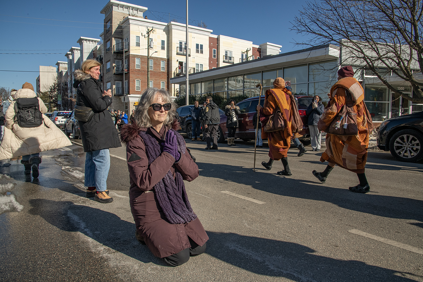 Marshall Pugh drove up to Richmond Monday morning from Kitty Hawk, N.C. through the recent snow there. He had already greeted the monks at the Virginia-North Carolina border by setting up a hot tea stand on their route, but he wanted to see them again.
