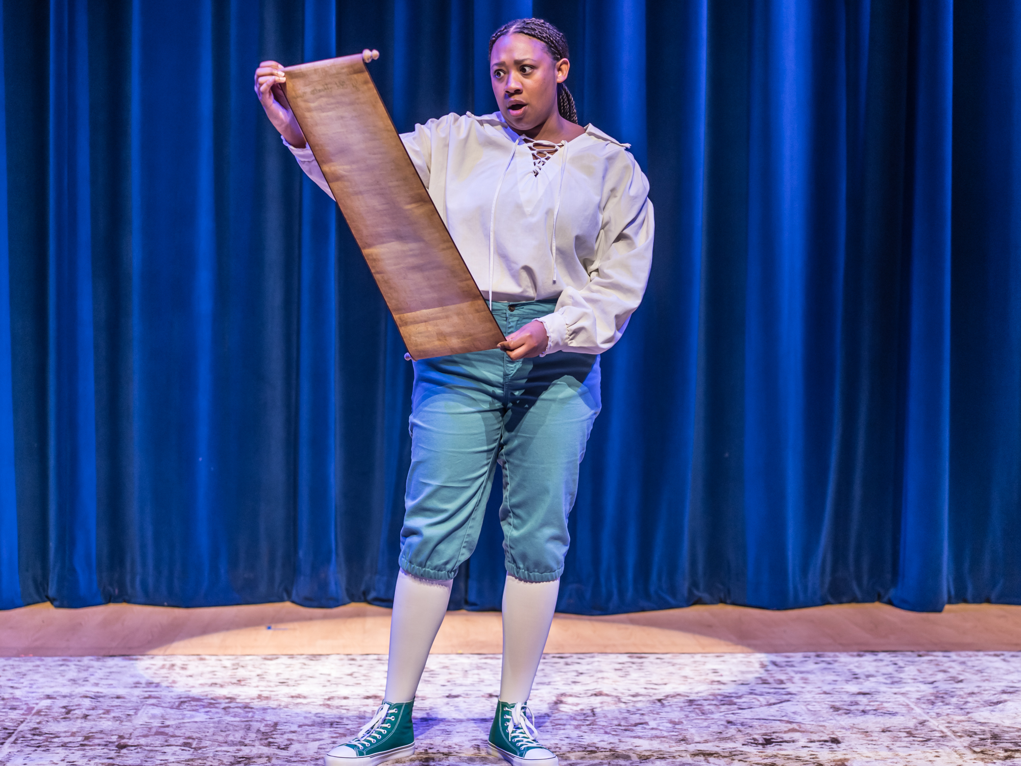 One great example happens early on when Joshua Mullins (all cast members are called by their real names) is asked to give a short synopsis of Shakespeare’s life. Resorting to ChatGPT, Mullins’ biography quickly devolves into a tossed salad of historical references, including Shakespeare’s delivery of the Emancipation Proclamation.