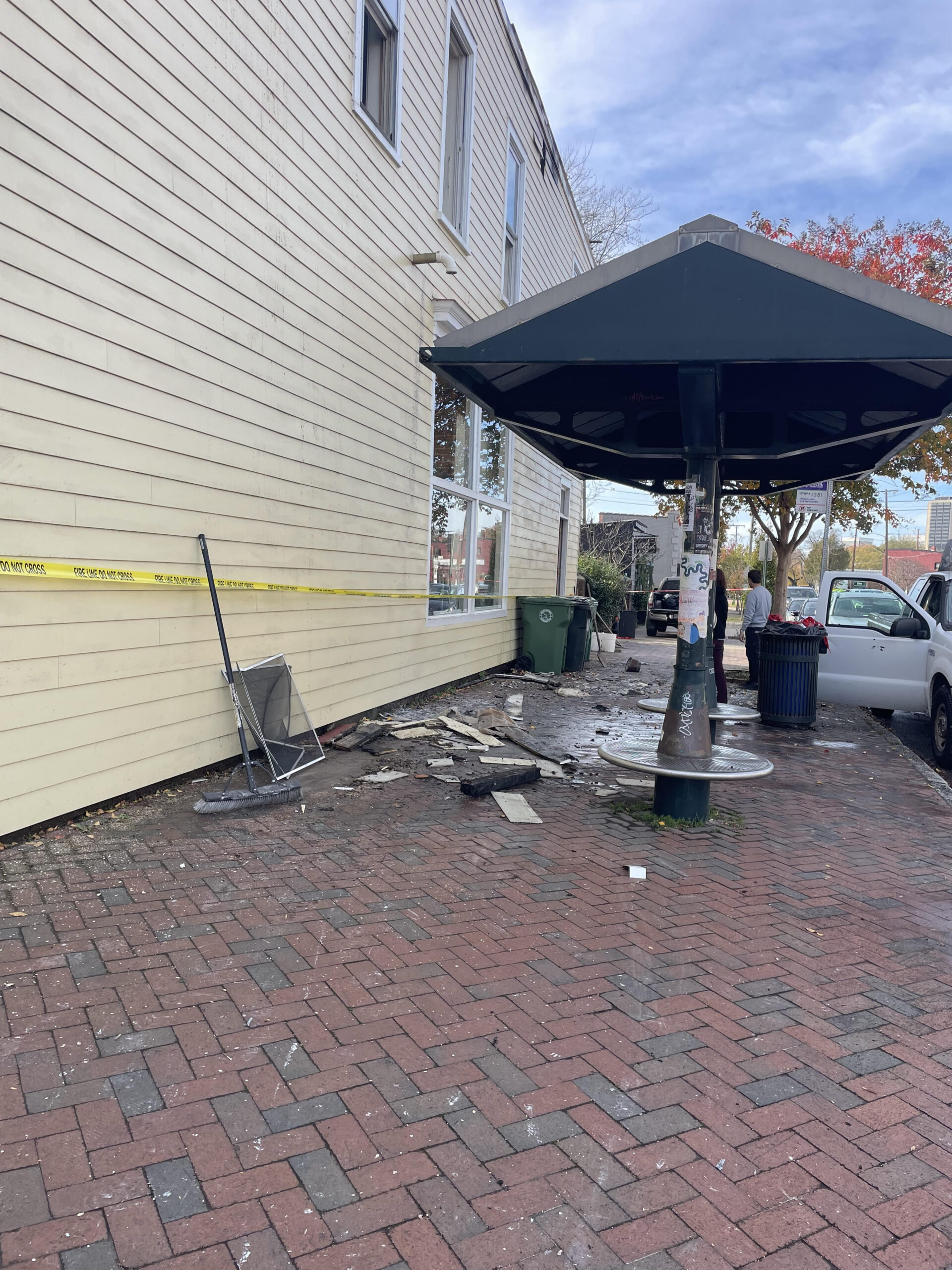 The caption reads: “There was a fire in the building this morning. We will be closed today and for the foreseeable future. We don’t know the extent of the damage and will keep you all informed as we find out more. Everyone is safe.”