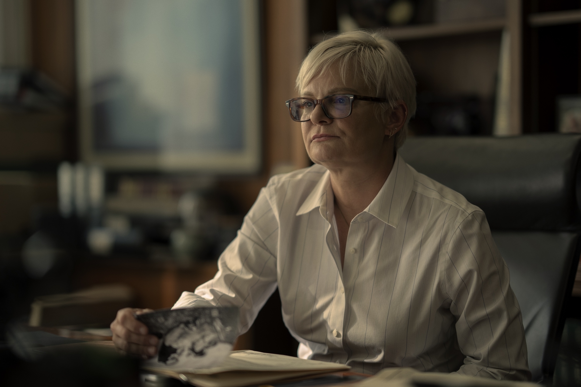 One of the first things I noticed about “Task” is that it appears more artfully shot than “Easttown,” with nicely composed images by director of photography Alex Disenhof that occasionally recall the earth-toned hues of David Fincher movies. While “Task” already feels a bit darker than “Easttown,” it offers a similar formula of cat-and-mouse crime procedural with powerful family dramas unfolding at home for the two leads, Ruffalo and Pelfrey (the cat and mouse respectively), each of whom recently suffered major personal losses and are on a collision course due to their moral choices.