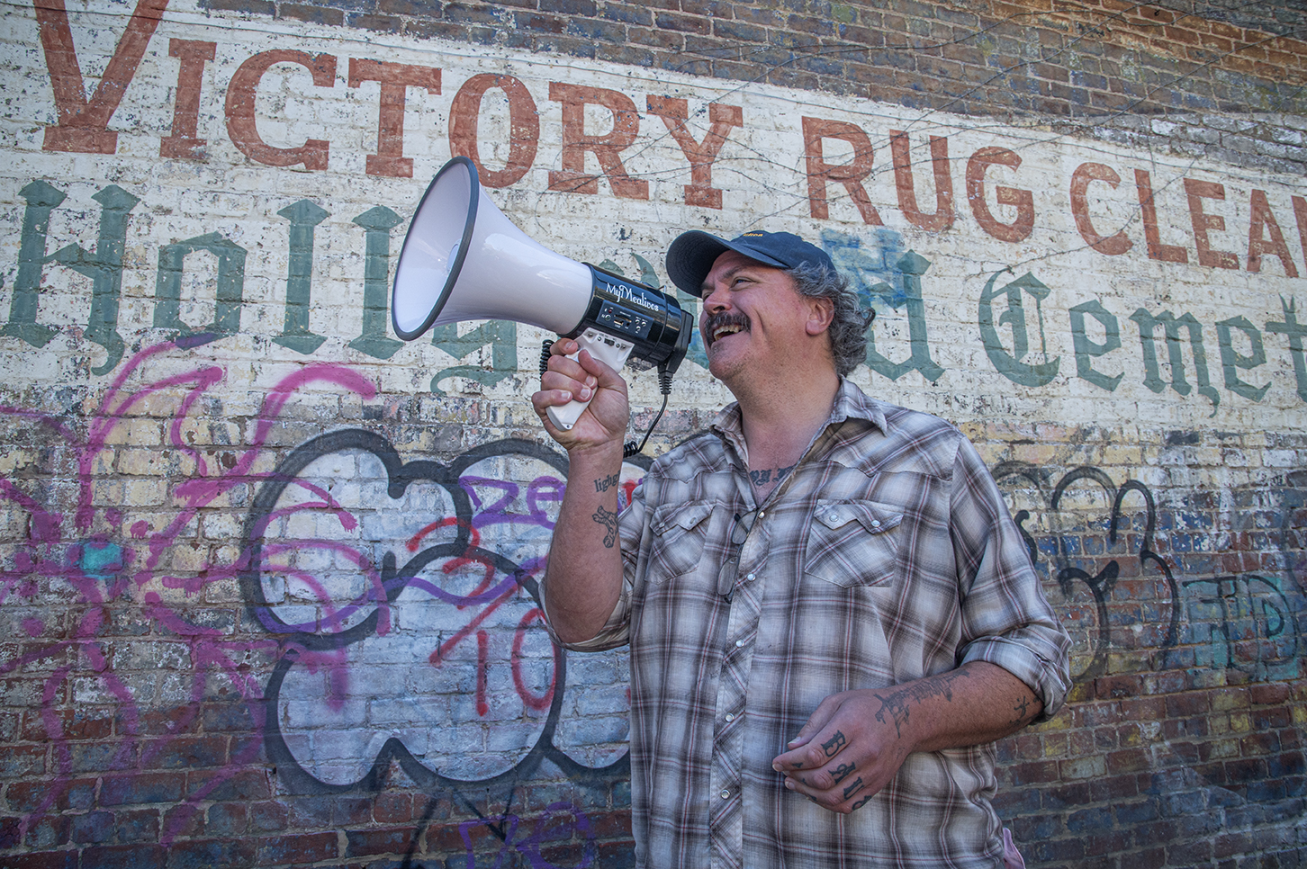 The surreal tours work like this: You show up at the appropriate time and place and look for a man with a bullhorn. “Because I’m a man who owns a bullhorn now,” Svalina says. “[Then] I’ll point to buildings and lie about them for 90 minutes.”
