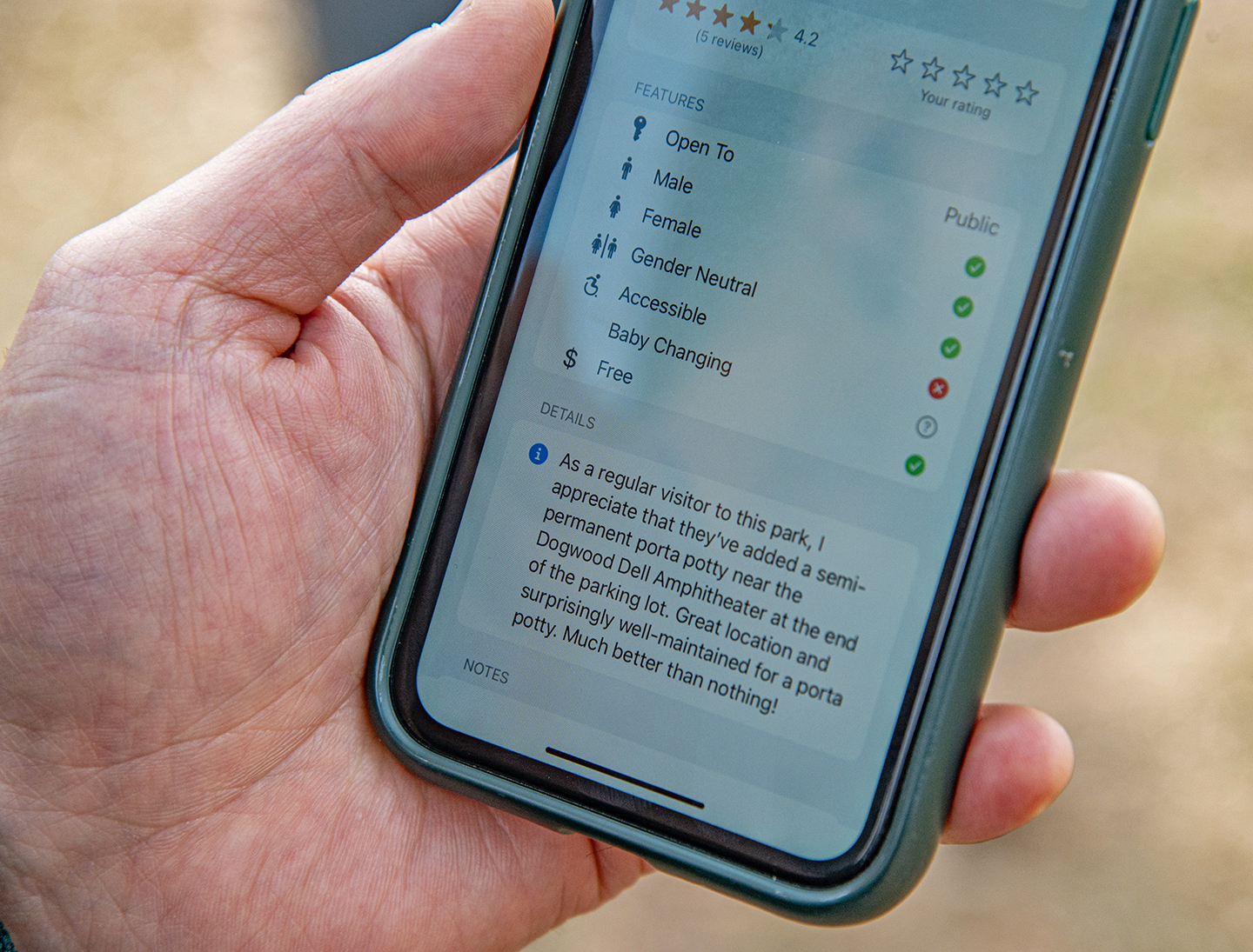 Beneath the surface-level silliness and embarrassment that usually surround ‘potty talk,’ the app’s reviews reveal a genuine vulnerability, along with the profound gratitude that comes with remedying this most human necessity. One parent writes of a porta-potty by Mary Munford Elementary School:
