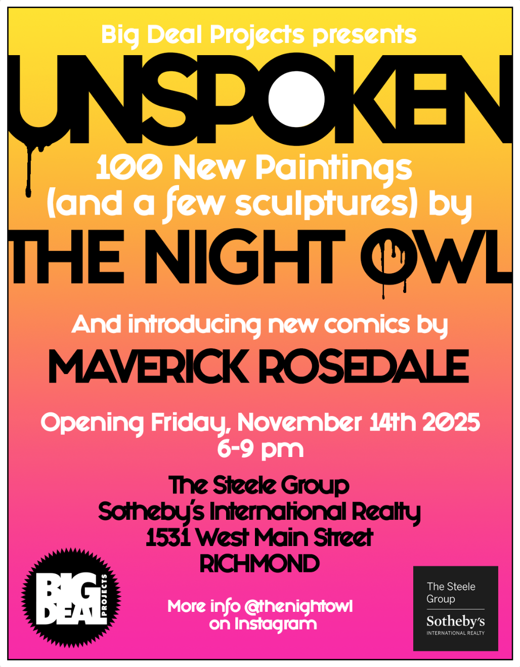 Steele Group 1531 West Main, Richmond, VA, United StatesBig Deal Projects presents an art market for all the last minute holiday shoppers, or for folks who deserve a little treat for themselves! We'll have affordable originals, prints, books, and more from Naomi McCavitt (Thicket Design), Mickael Broth (The Night Owl), Jered Fykes (Jerro), Erek Jones (Stachesquatch), and Ross Trimmer (Sure Hand Signs), in […]