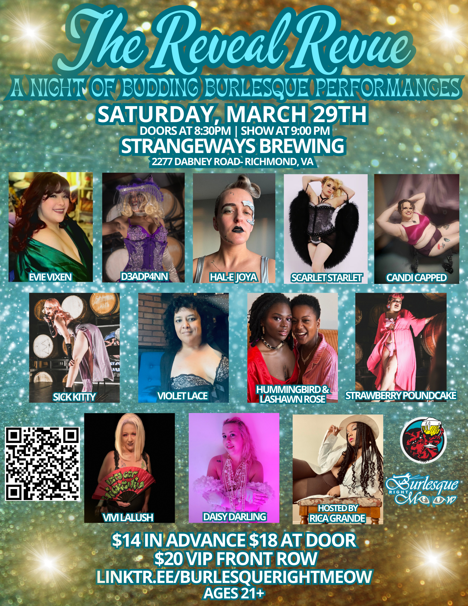 Strangeways Brewing 2277A Dabney Road, Richmond, VA, United StatesIt's the most wonderful time of the year: Halloween season! Burlesque Right Meow is back at Strangeways Brewing bringing you a little creepy, spoopy, and spectacular for October's Pours and Pasties show! This cast of amazing performers from RVA and beyond are full of tricks and treats that are sure to delight you all night […]