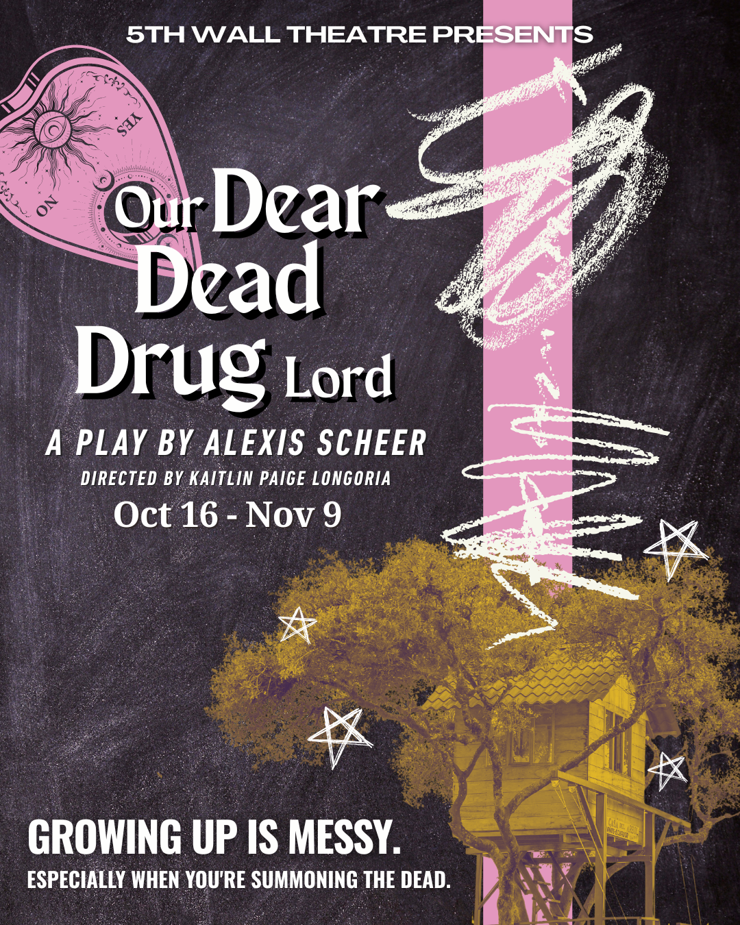 The BASEMENT 300 East Broad Street, Richmond, VA, United States5th Wall Theatre opens its 2025/2026 Season in our new home—The Basement—with Alexis Scheer’s Our Dear Dead Drug Lord. High above Miami, four teenage girls gather in a cluttered treehouse to conduct a sĂ©ance to summon the spirit of Pablo Escobar. What begins as a game of guts and giggles spirals into a darkly funny, […]