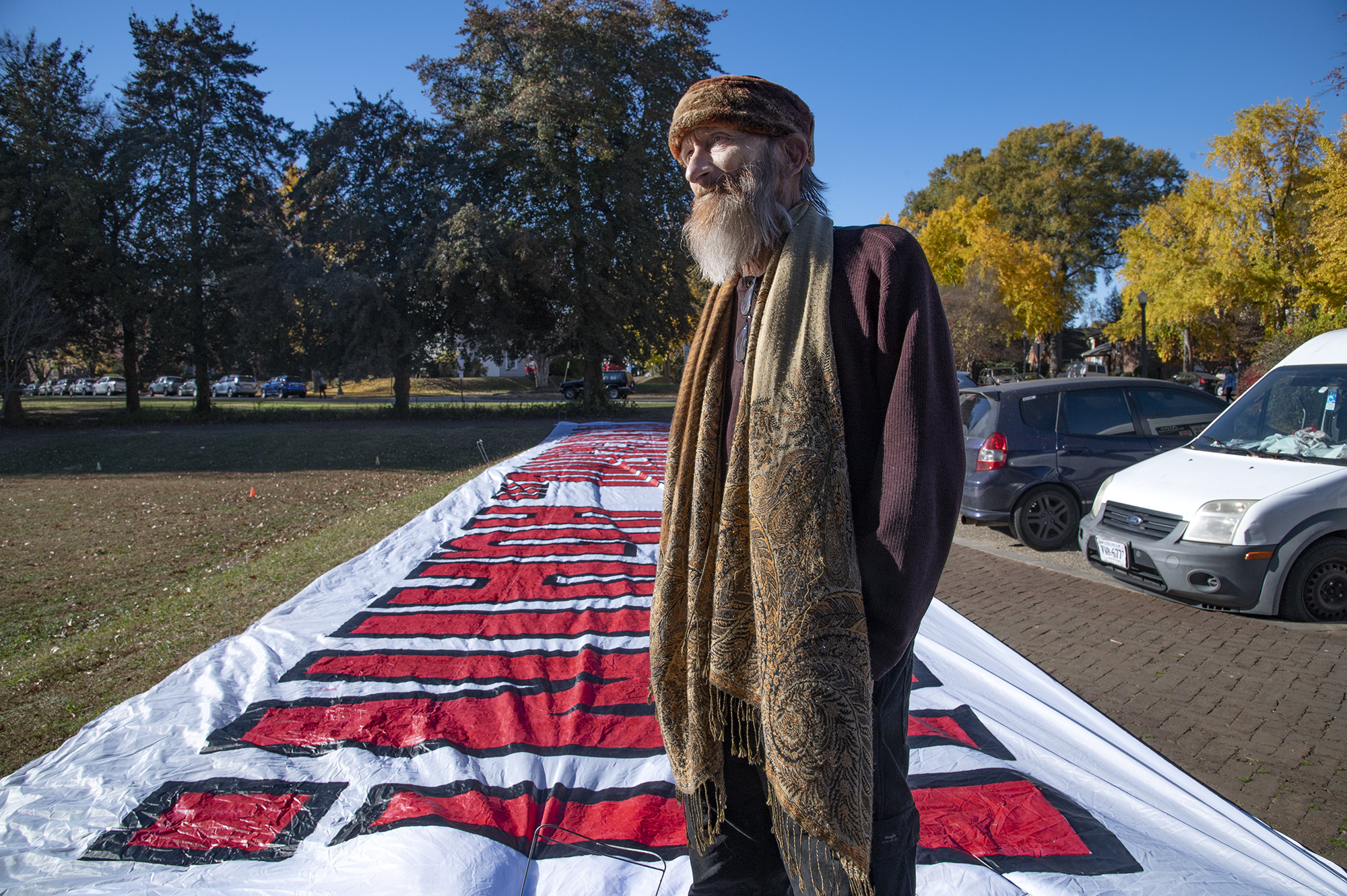 One example of his out-of-the-box thinking was hiring an airplane to fly a huge banner protesting the 2023 casino referendum over the large crowds at the Richmond Folk Festival. “We defeated the casino once and then they came back and we had to defeat it again,” she says. “The second time being an even more resounding defeat for them. And all we had was Alan’s Kabuki theater.” In the early days of the Community Hospital protest, the activist proposed that he and Baskerville hold a church service on the grounds of the building every first Sunday of the month. “I told him that this would be trespassing. He said, ‘You know, let’s just go ahead and do it and let them throw us out.'”
